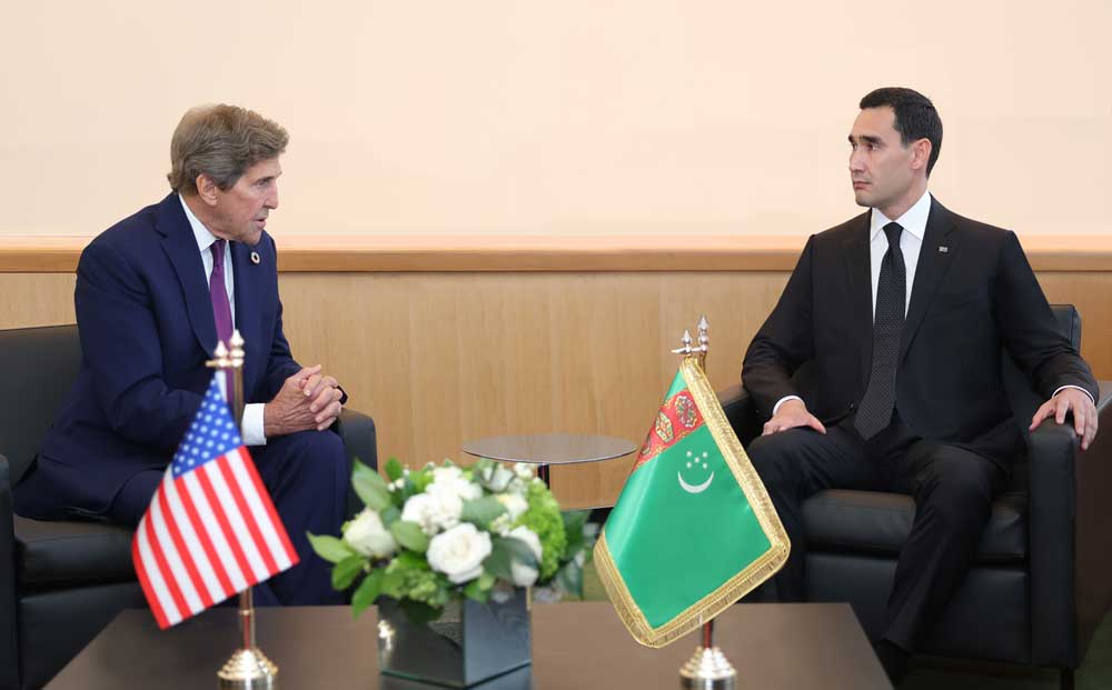 Birleşen Milletler Guramasynyň Baş Assambleýasynyň 78-nji sessiýasyna gatnaşmak üçin Amerikanyň Birleşen Ştatlarynda iş saparynda bolýan hormatly Prezidentimiz Serdar Berdimuhamedow ABŞ-nyň Prezidentiniň howanyň üýtgemegi meseleleri boýunça Ýörite wekili Jon Kerri bilen duşuşdy.