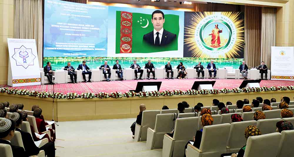 Mälim bolşy ýaly, şu ýylyň sentýabrynda Koreýa Respublikasynyň Seul şäherinde geçirilen «World Smart City Expo» sergisinde Arkadag şäheri «Iň tapawutlanan «akylly» şäher», «Daşary ýurt «akylly» şäheri», «World Smart City Expo 2024» halkara sergisine goşan uly goşandy üçin» atly üç sany baýraga mynasyp boldy. Ähli babatda nusgalyk Arkadag şäheri türkmen halkynyň buýsanjydyr. Köpetdagyň etegindäki ajaýyp künjekde ýerleşýän bu şäher «akylly» şäher gurluşygynyň milli nusgasy bolup, dünýä binagärliginiň öňdebaryjy gazananlaryny we tehniki üstünlikleri özünde jemleýär. Bu ýerde halkara ölçeglere gabat gelýän toplumlaýyn düzümler, şol sanda tebigaty goramak babatda netijeli çözgütler ilatyň abadan durmuşyny üpjün edýär. Onuň çäginde ekologiýa ýaly möhüm ugra aýratyn üns berlip, desgalaryň gurluşygynda ekologik taýdan arassa serişdelerden peýdalanylýar. Şu gezekki halkara ylmy-amaly maslahat hem bu ugurda ulgamlaýyn esasda işleri alyp barmak, milli tejribäni paýlaşmak, “akylly” şäher konsepsiýasyny yzygiderli ornaşdyrmak maksady bilen guraldy.