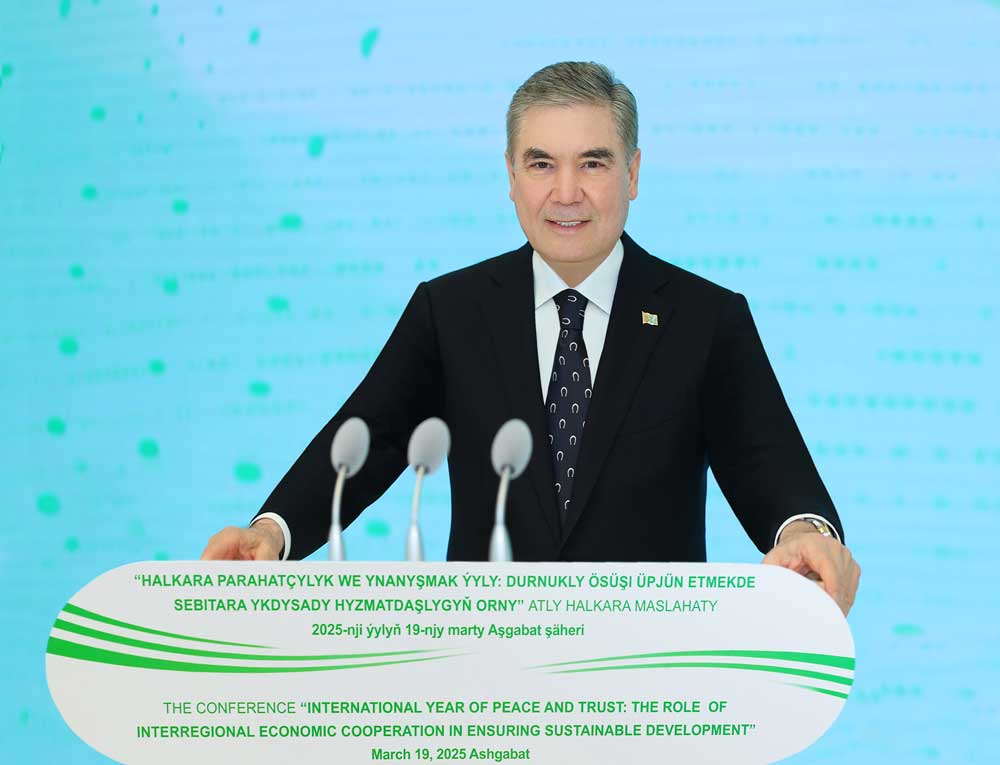Türkmen halkynyň Milli Lideri, Türkmenistanyň Halk Maslahatynyň Başlygy Gahryman Arkadagymyzyň “Halkara parahatçylyk we ynanyşmak ýyly: durnukly ösüşi üpjün etmekde sebitara ykdysady hyzmatdaşlygyň orny” atly halkara maslahatdaky ÇYKYŞY