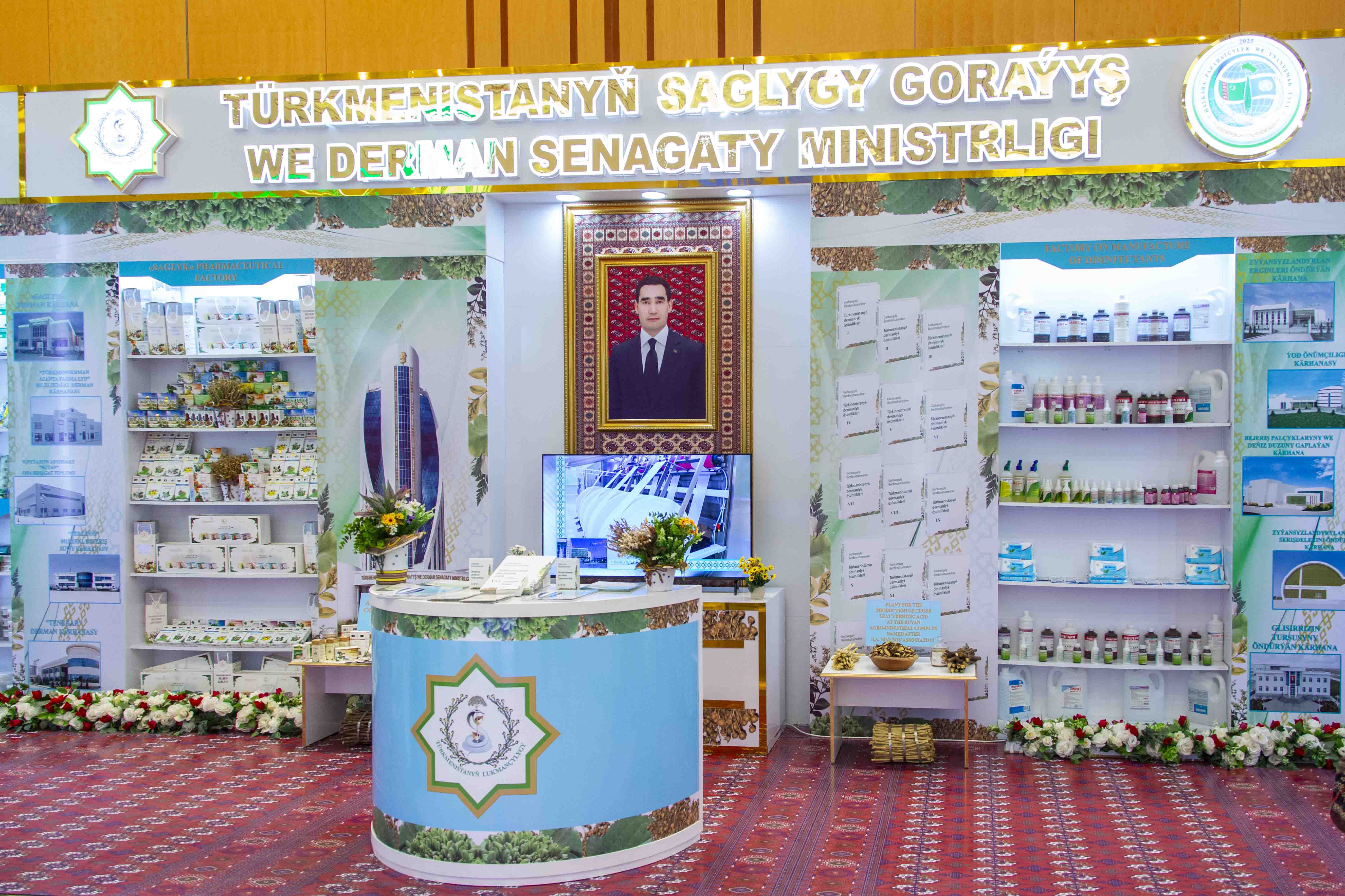 Türkmenistanyň Saglygy goraýyş we derman senagaty ministrliginiň sergi diwarlygynda ýurdumyzda öndürilýän dermanlaryň we lukmançylyk serişdeleriniň dürli görnüşleri görkezilýär. Döwlet maksatnamalaryny amala aşyrmagyň çäklerinde soňky ýyllarda ýerli çig mallardan bejeriş serişdelerini öndürmek boýunça täze kärhanalar açyldy. Bu ýerde Gahryman Arkadagymyzyň “Türkmenistanyň dermanlyk ösümlikleri” atly köp jiltli ylmy-ensiklopedik kitaplarynda beýan edilýän dermanlyk ösümliklerden taýýarlanan melhemlik çaýlar myhmanlara hödür edilýär.
