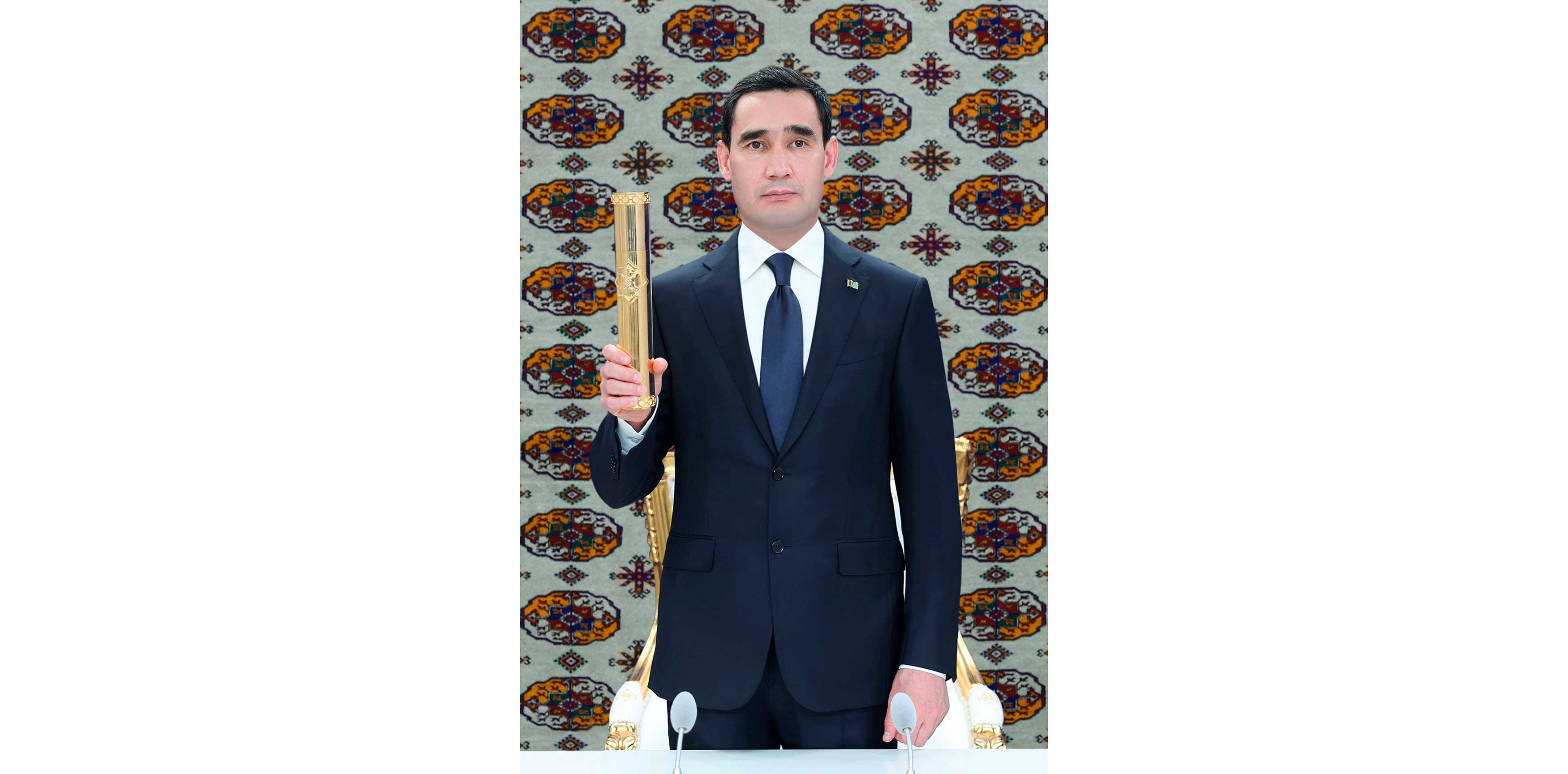Soňra döwlet Baştutanymyz dabaranyň geçirilýän ýerine bardy. Hormatly Prezidentimiz dabara mynasybetli guralan aýdym-sazly çykyşlara tomaşa edenden soňra, ýörite gurnalan mejlisler zalyna bardy hem-de bu ýerde gutlag sözi bilen çykyş etdi.