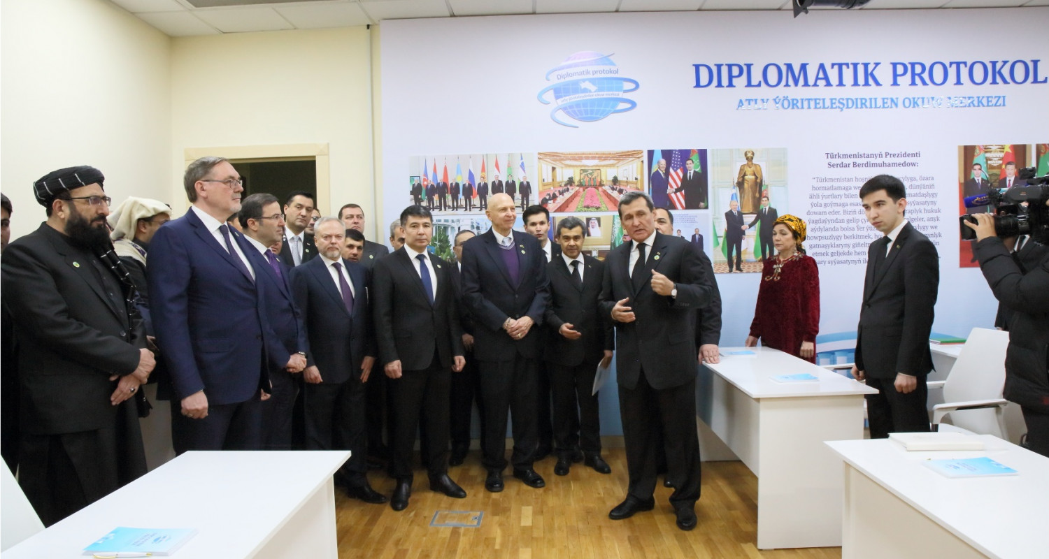 2024-nji ýylyň 18-nji fewralynda Türkmenistanyň Daşary işler ministrliginiň Halkara gatnaşyklar institutynda “Diplomatik protokoly” täze okuw merkeziniň açylyş dabarasy geçirildi. Çärä Daşary işler ministrliginiň, ýurdumyzyň diplomatik gullugynyň wekilleri we Türkmenistanda akkreditlenen diplomatik wekilhanalaryň we halkara guramalarynyň wekilhanalarynyň ýolbaşçylary gatnaşdy.