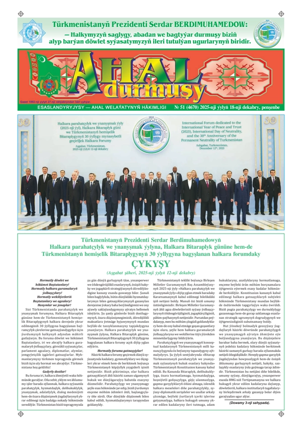 2025-NJI ÝYL - «HALKARA PARAHATÇYLYK WE YNANYŞMAK ÝYLY»