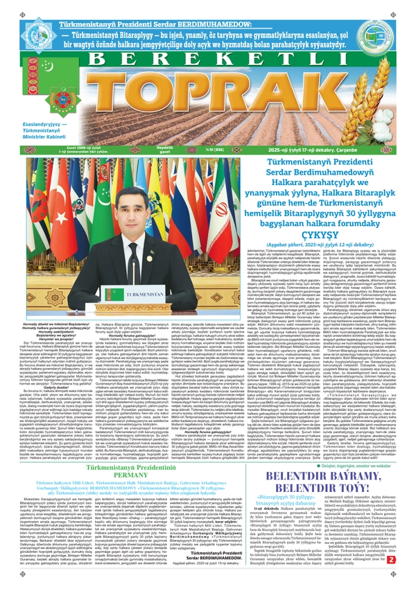 2025-NJI ÝYL - «HALKARA PARAHATÇYLYK WE YNANYŞMAK ÝYLY»