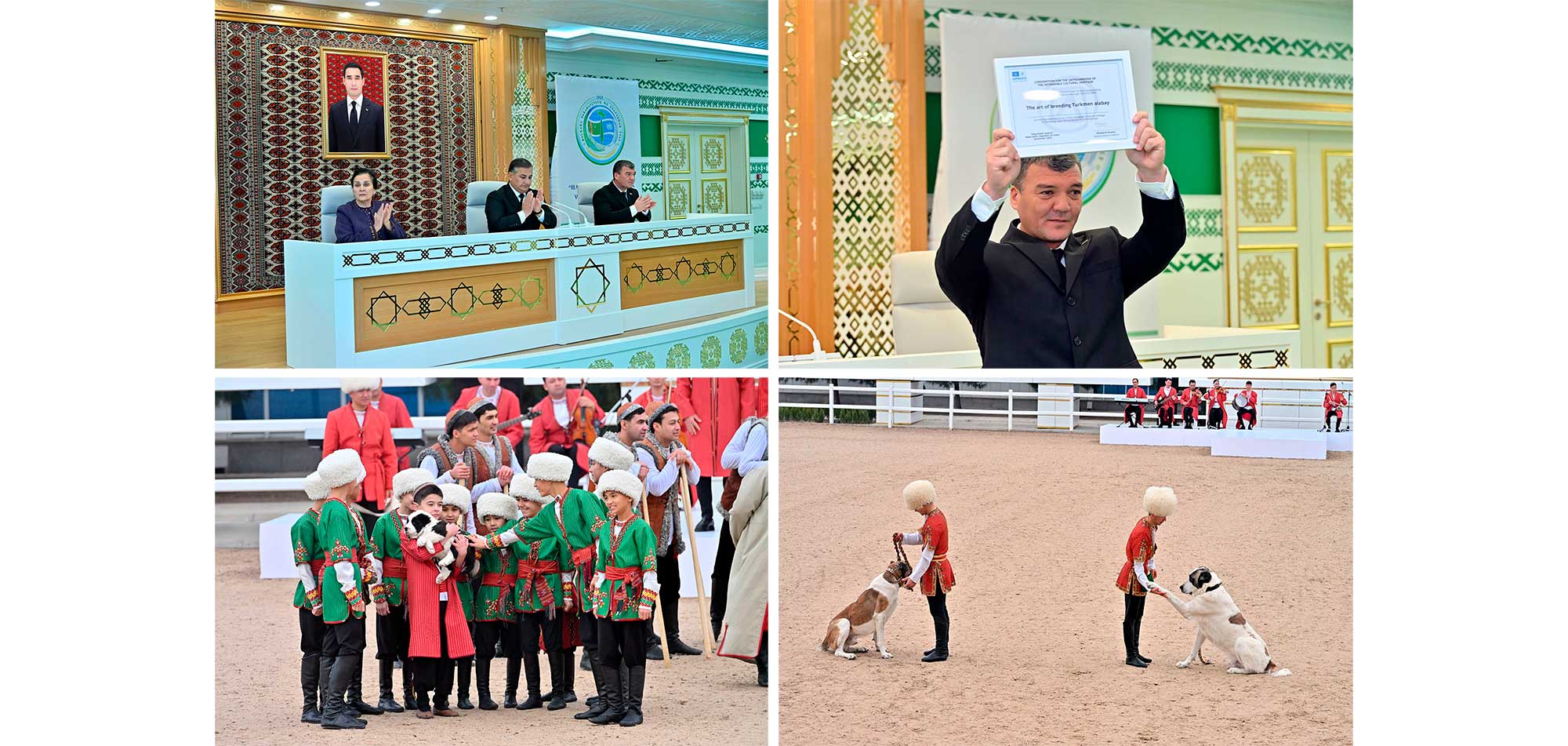 В ходе церемонии подчёркивалась значимость поздравительного послания Национального Лидера туркменского народа, Председателя Халк Маслахаты Туркменистана Героя-Аркадага в адрес уважаемого Президента от имени туркменского народа и Халк Маслахаты Туркменистана по случаю включения национальной номинации «Искусство разведения туркменского алабая» в Репрезентативный список нематериального культурного наследия человечества ЮНЕСКО.