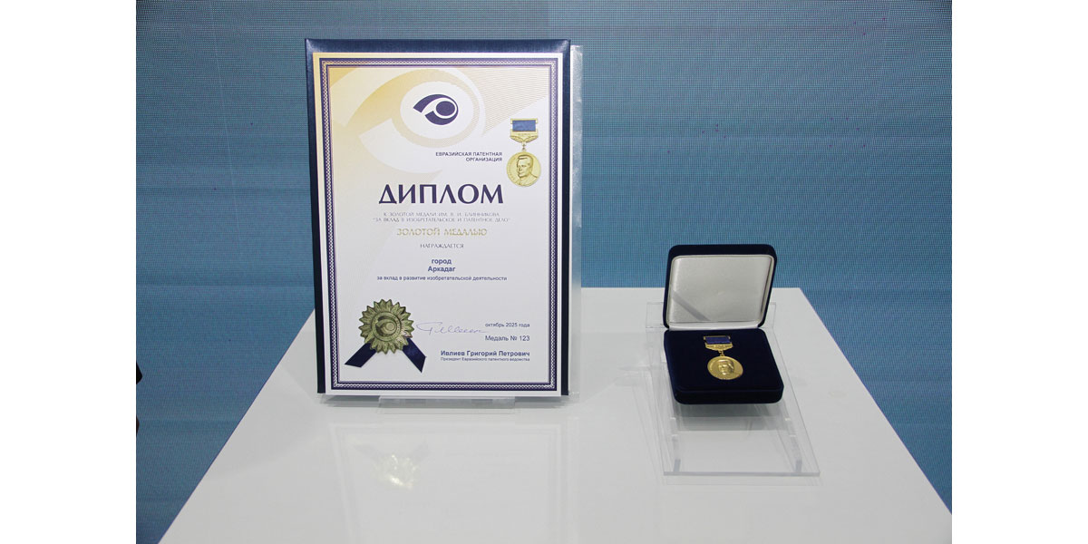 The highlight of the ceremony was the presentation of the Gold Medal named after V.I. Blinnikov of the Eurasian Patent Organisation to the city of Arkadag by the President of the Eurasian Patent Organisation, G. Ivliyev. The award was accepted by D. Orazov, chairman of the State committee for construction of the city of Arkadag under the President of Turkmenistan.