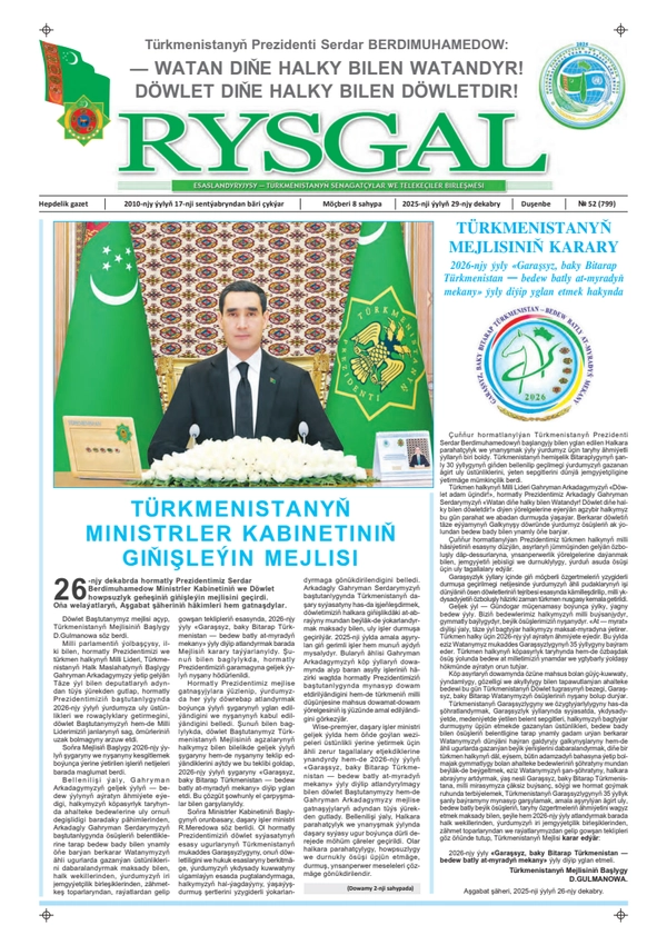 2026-njy ýyl - «Garaşsyz, baky Bitarap Türkmenistan — bedew batly at-myradyň mekany» ýyly